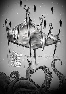 Œuvres originales et projets illustrés explorant des thèmes sombres et introspectifs. Certaines pièces sont disponibles à la vente sous forme d'originaux ou de tirages.